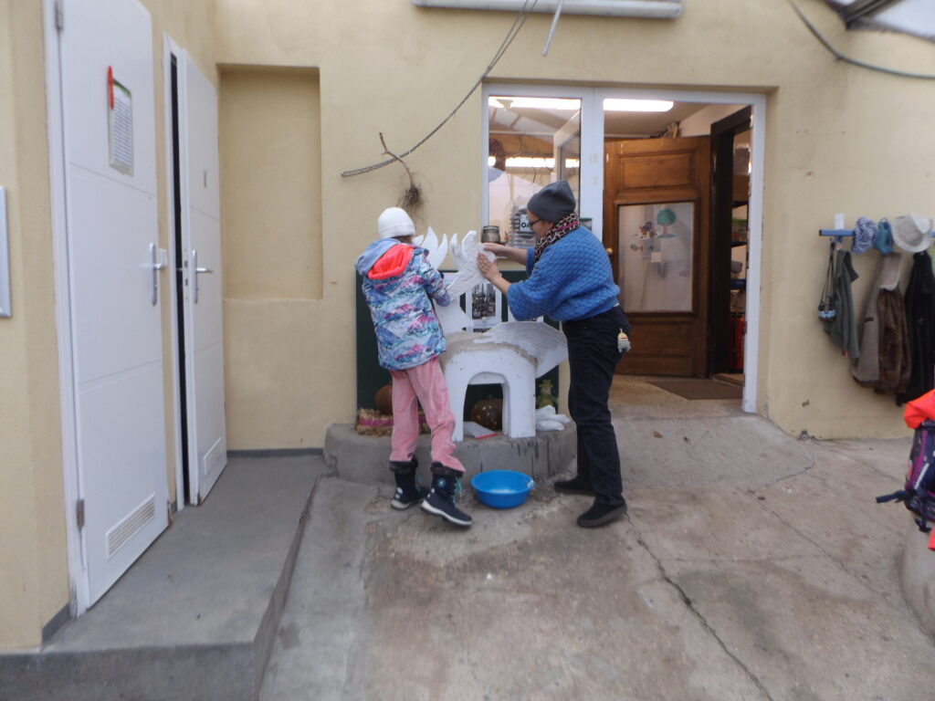 Ende November wurde es zum ersten Mal Weiß in der Gärtnerei. Wir nutzten den Schnee zum Quatsch machen und rodeln. 🙂 Mit plastischen Arbeiten haben wir unsere Räume etwas winterlich geschmückt. Das Wetter meinte es gut mit uns, so konnten die Kinder die großzügigen Flächen für ihre individuellen Wünsche super nutzen.